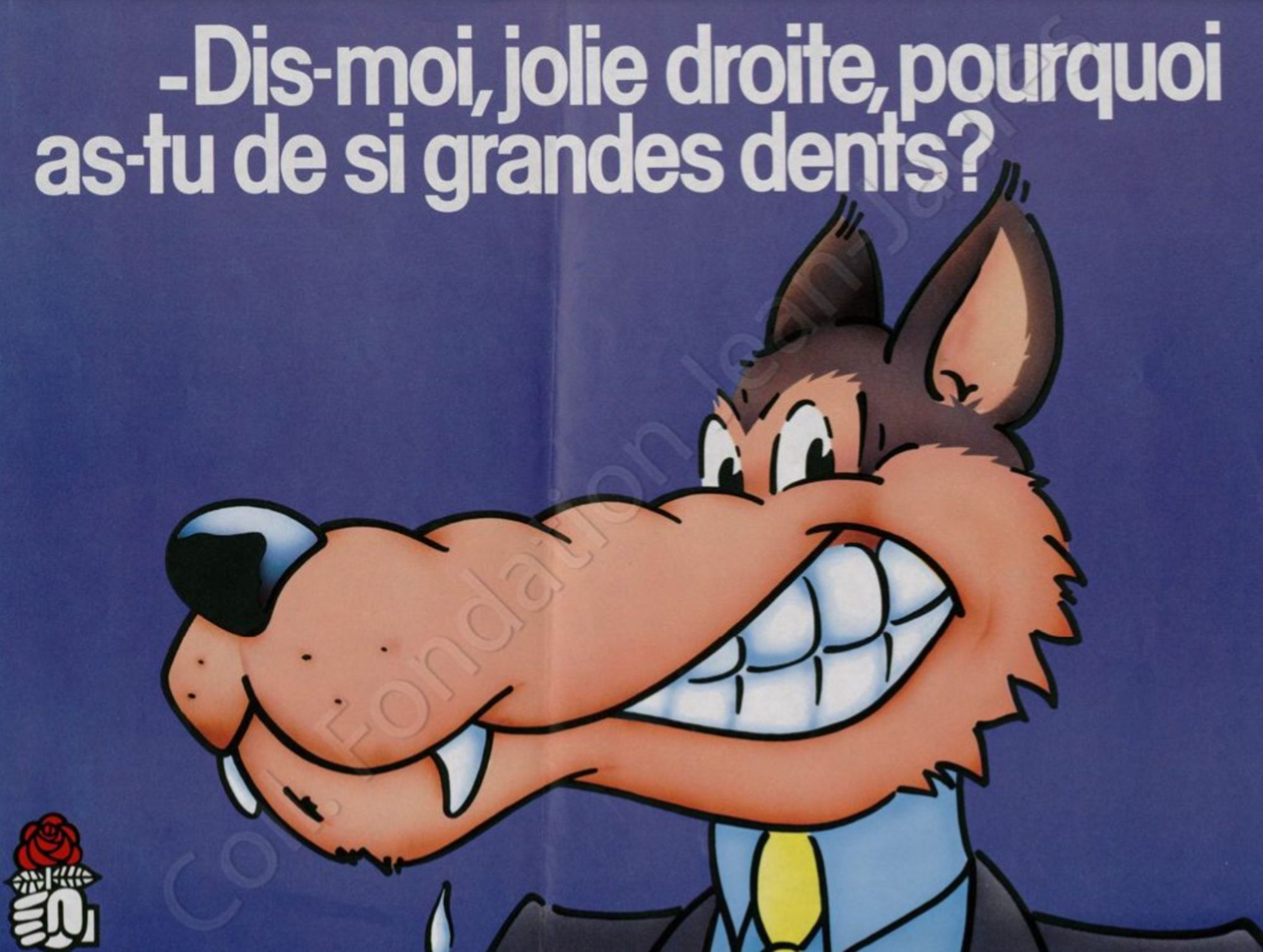 Janvier 1986, le Parti socialiste entame la seconde phase de sa pré-campagne pour les élections législatives prévues en mars 1986. Après une première série d’affiches lancée en décembre 1985 au ton décalé « Au secours ! La droite revient » montrant 5 personnages terrifiés par cette idée, le PS continue de jouer sur la carte de l’humour avec cette figure du loup tout droit sorti d’une bande dessiné, placardé en 4x3m sur les panneaux publicitaires partout en France.