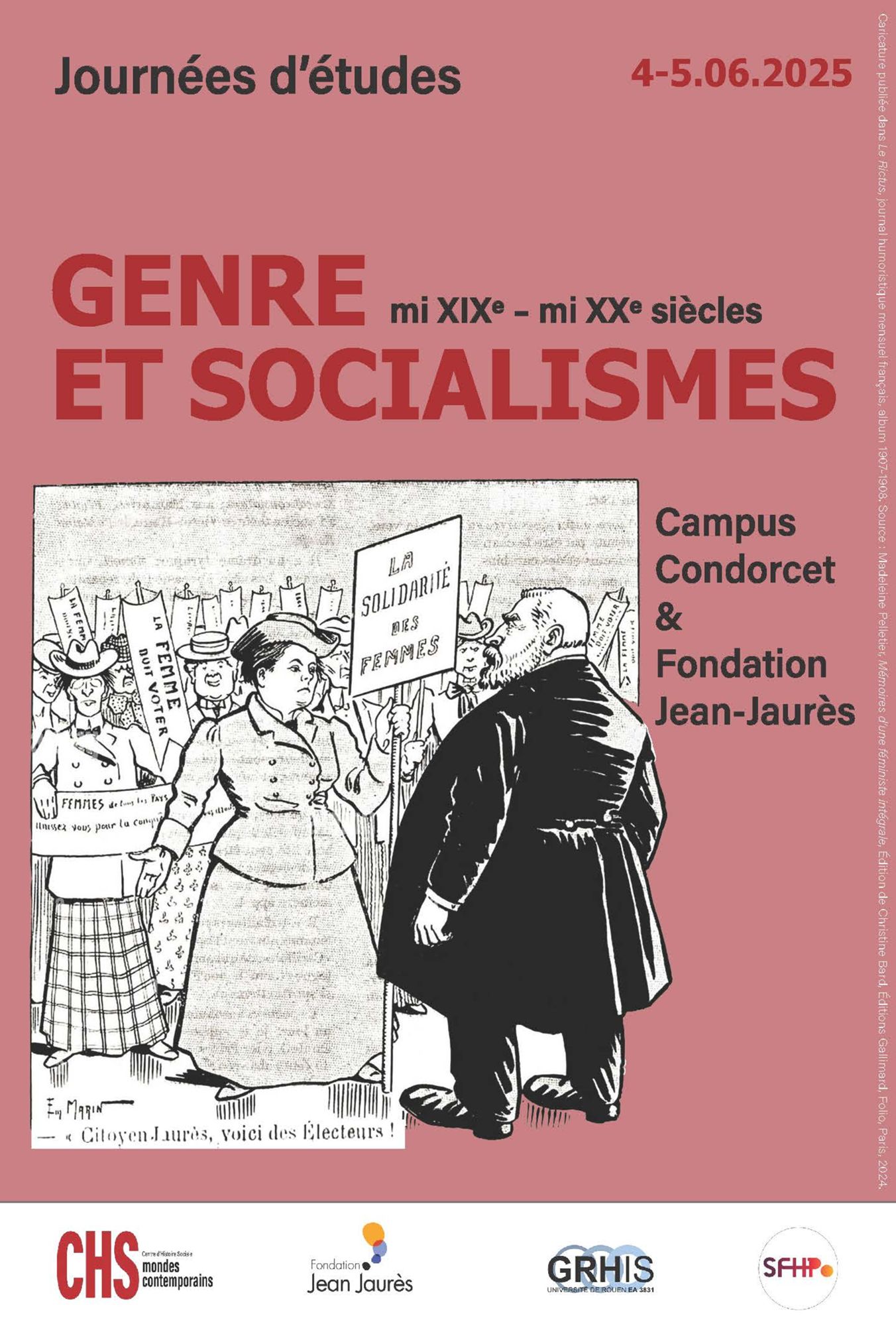 Ces deux journées d’études, proposées par le Centre d’histoire sociale des mondes contemporains (université Paris 1 Panthéon-Sorbonne), le réseau Eurosoc – GRHis (université de Rouen Normandie), la Société française d’histoire politique et la Fondation Jean-Jaurès se proposent d’ouvrir de nouvelles perspectives en histoire du socialisme, en l’interrogeant au prisme du genre. La période qui s’étend du milieu du XIXe siècle au milieu du XXe siècle constitue un terrain d’étude particulièrement riche.
