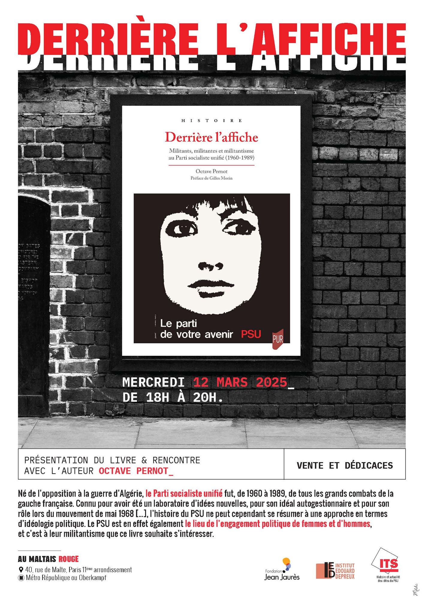Rencontre publique autour du livre d’Octave Pernot, Derrière l’affiche. Militants, militantes et militantisme au Parti socialiste unifié (1960-1985) (PUR, 2025), animée par Jean-François Merle