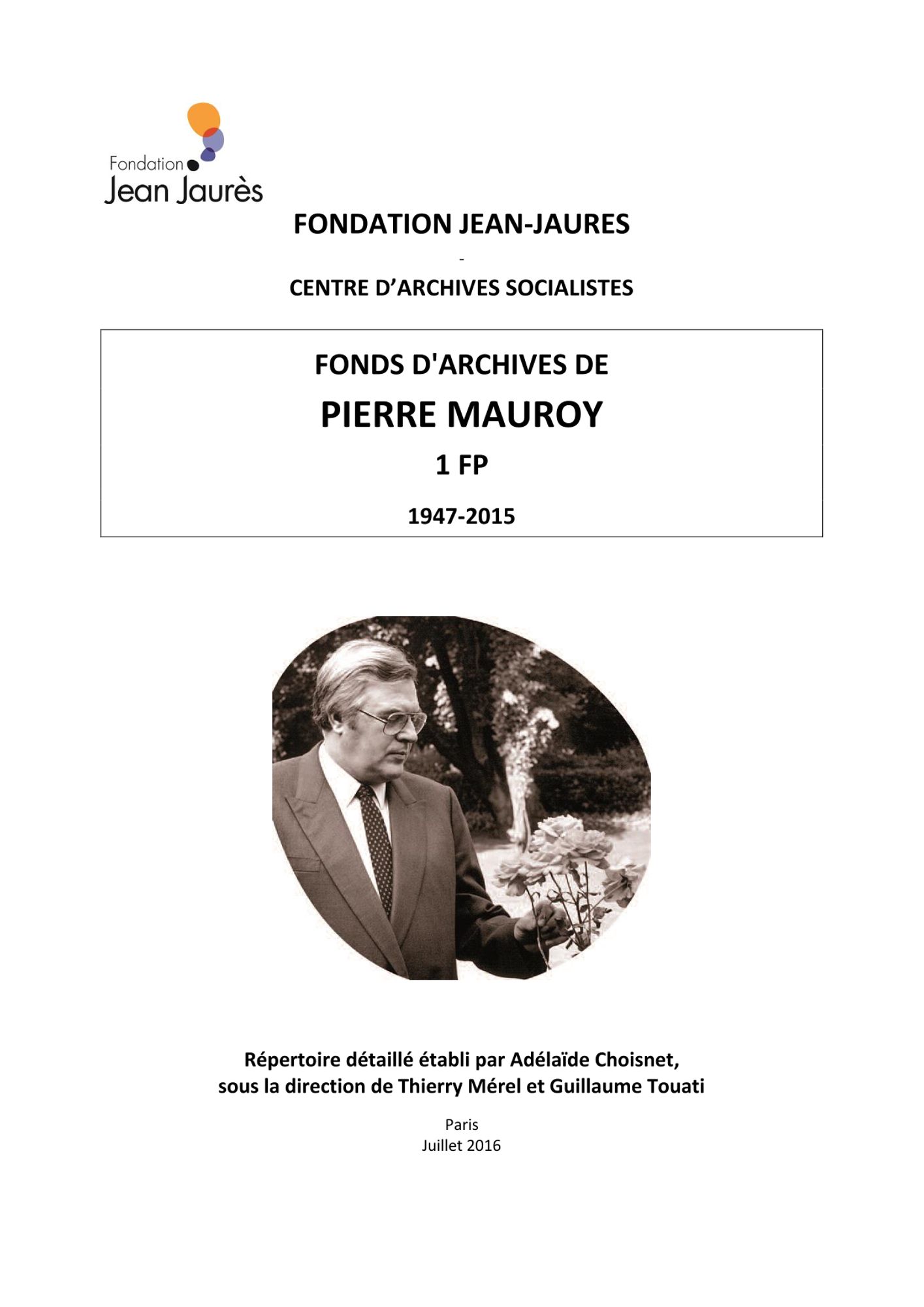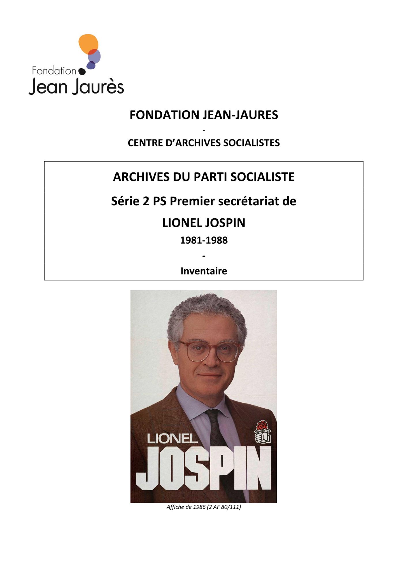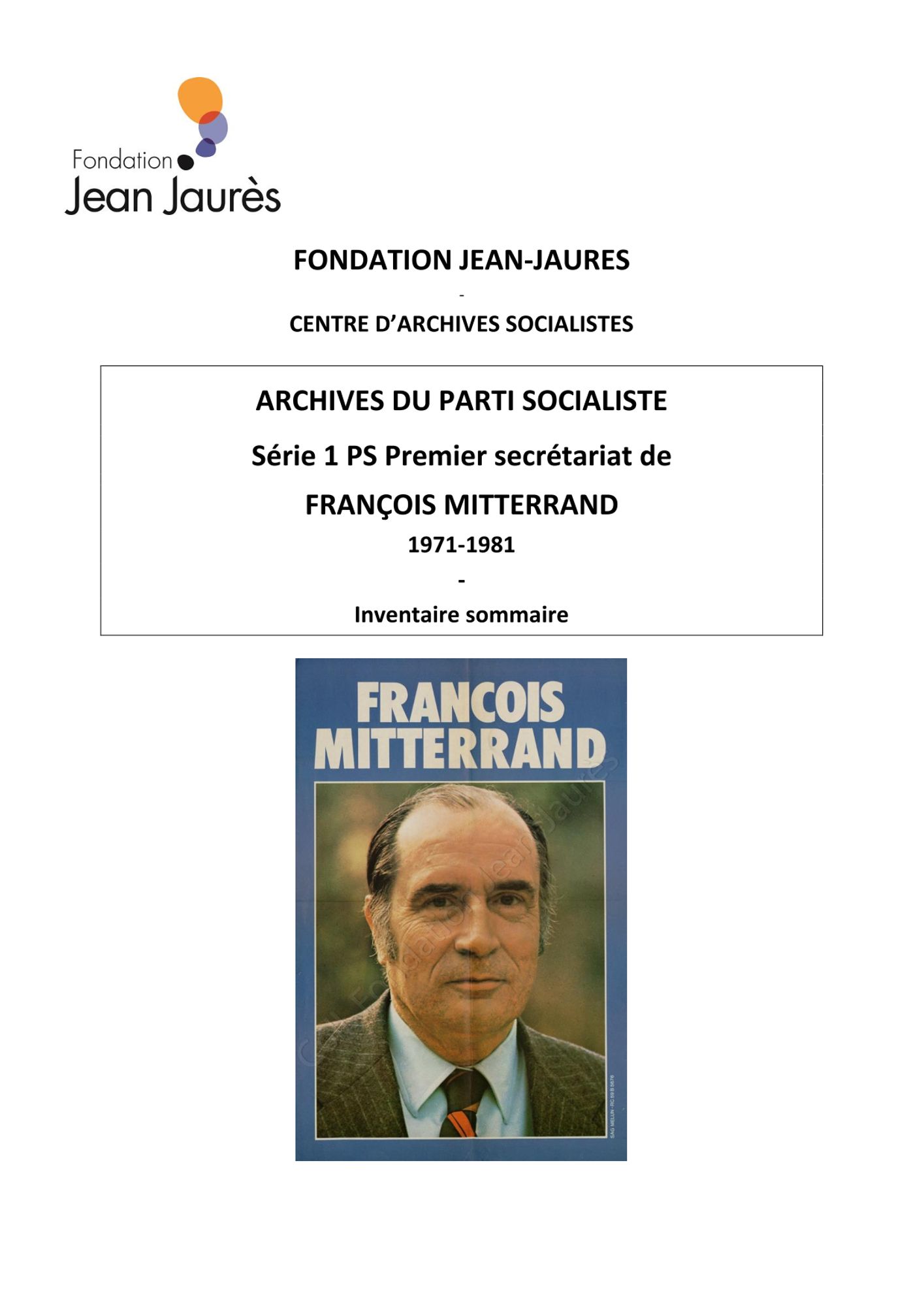 La Fondation conserve des fonds classés à consulter sur place pour François Mitterrand, Lionel Jospin et Pierre Mauroy. Les inventaires de ces fonds sont à télécharger en format pdf ci-dessous :
