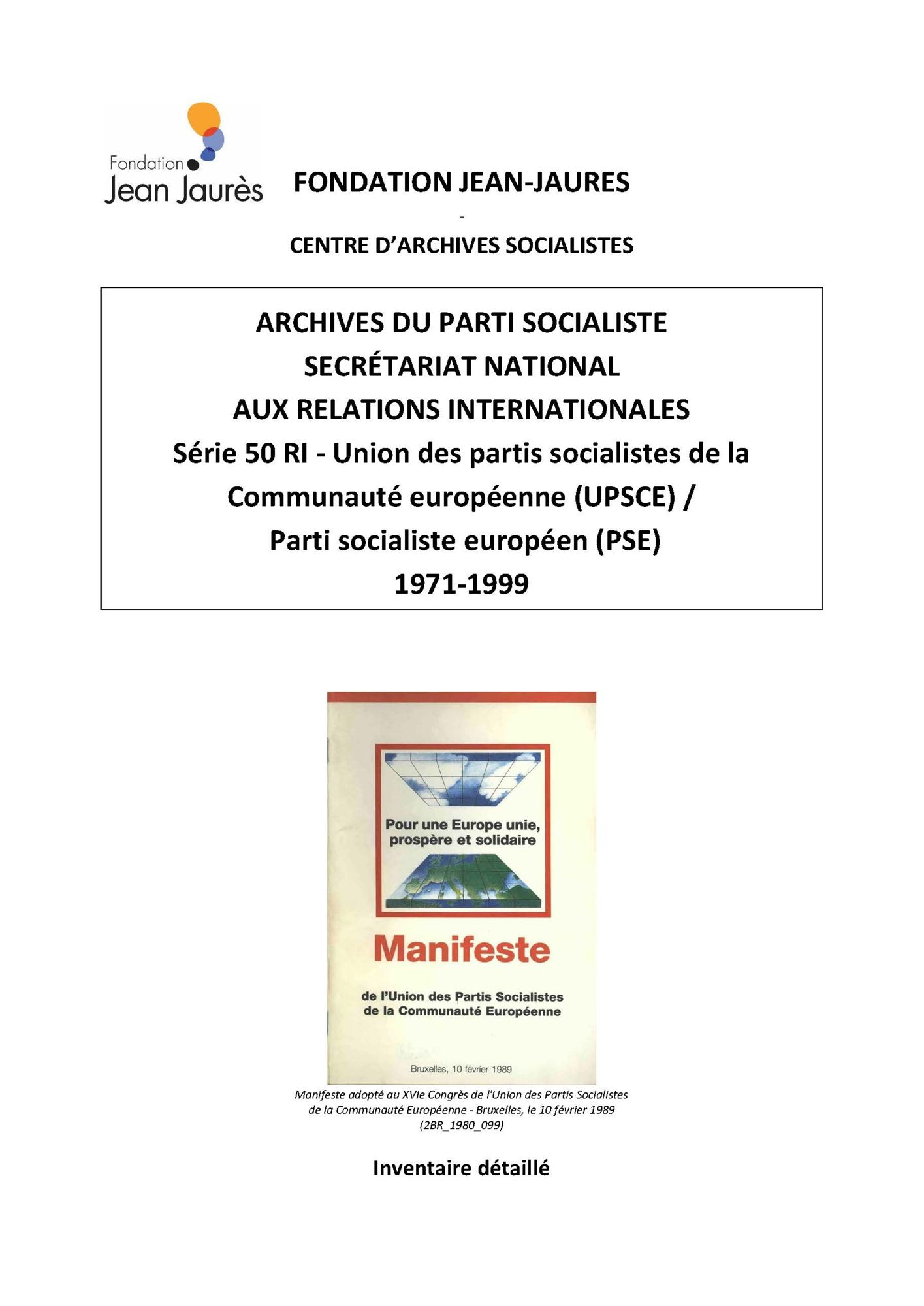 L’inventaire détaillé des dossiers de la série 50 RI (1971-1999), concernant l'Union des partis socialistes de la Communauté européenne (UPSCE) et du Parti socialiste européen (PSE) est en ligne !