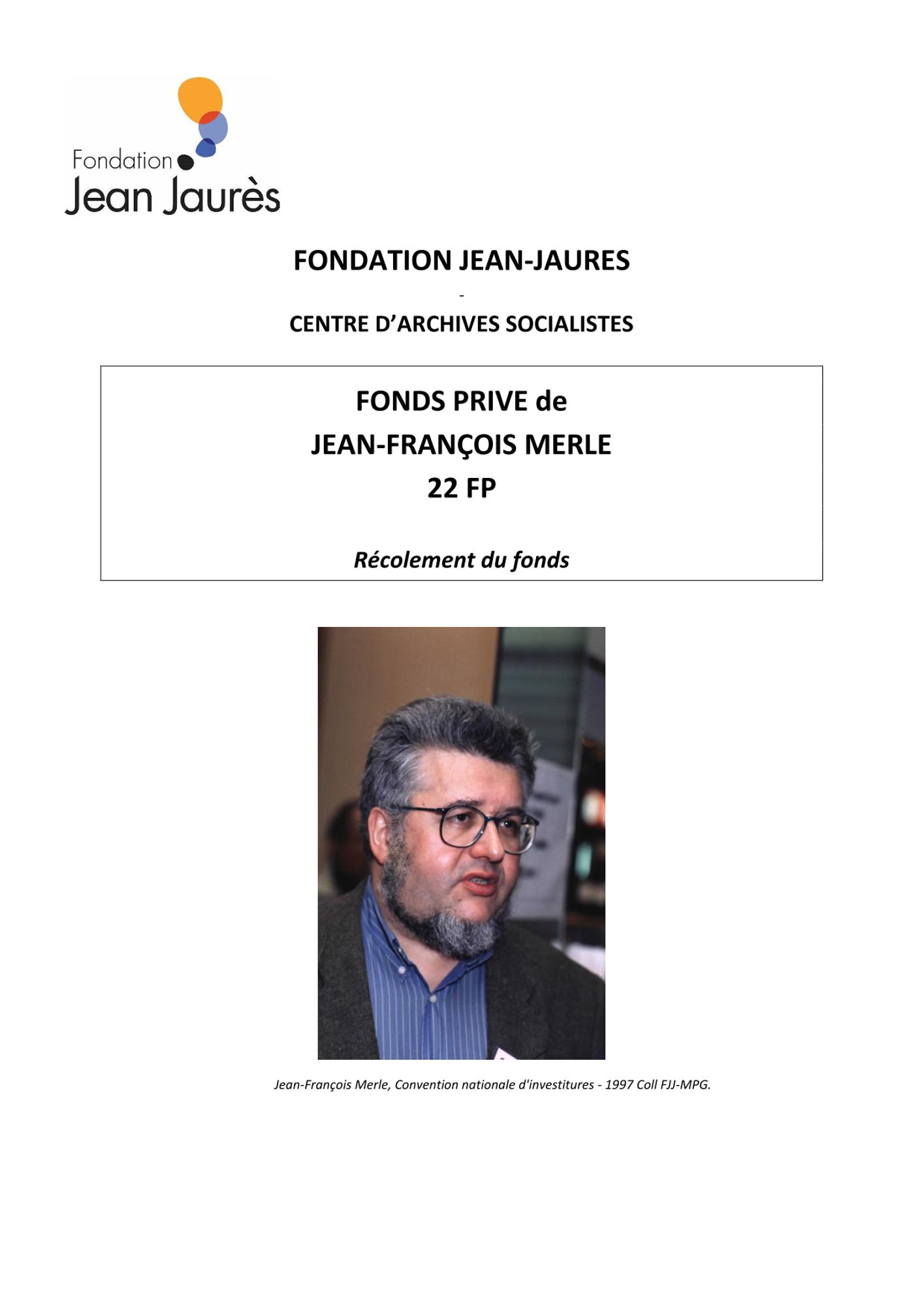 Né le 11 janvier 1952, proche collaborateur de Michel Rocard, Jean-François Merle contribue à la rédaction de ses discours de 1975 à 1993. Il a été successivement son assistant parlementaire, son chef de cabinet en 1981 puis, à Matignon, conseiller technique chargé de l’outre-mer. À ce titre, il a notamment suivi la négociation et la mise en œuvre des accords de Matignon sur la Nouvelle-Calédonie. En 1995 Jean-François Merle est adjoint de Louis Le Pensec, chargé de la campagne Outremer. En 2002, il est lui-même chargé de la campagne Outremer pour Lionel Jospin. De 1997 à 2003, Jean-François Merle est délégué national à l’Outremer auprès de François Hollande. Il est également maire honoraire de Châtenay-Malabry (92).