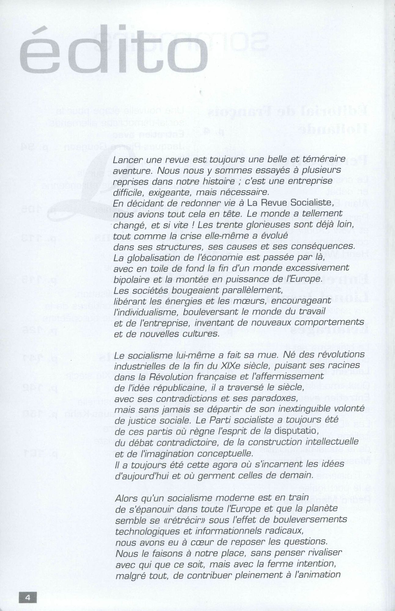 [16] « Comprendre et dépasser le non », La Revue socialiste n° 20, juillet 2005.