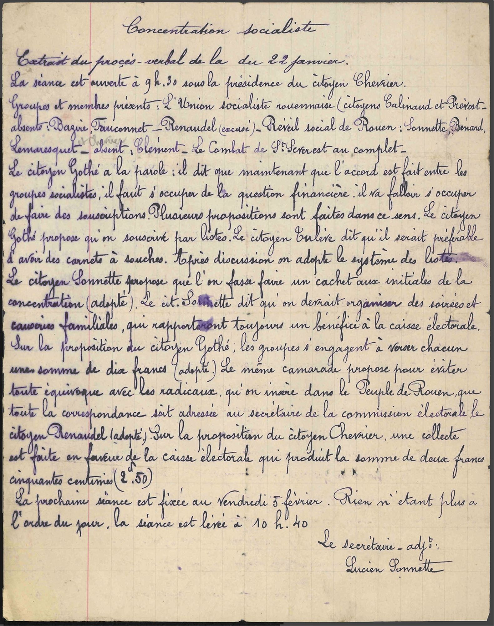 10 Fonds Renaudel (19FP) - Mise en place de la Concentration socialiste pour les élections municipales de Rouen