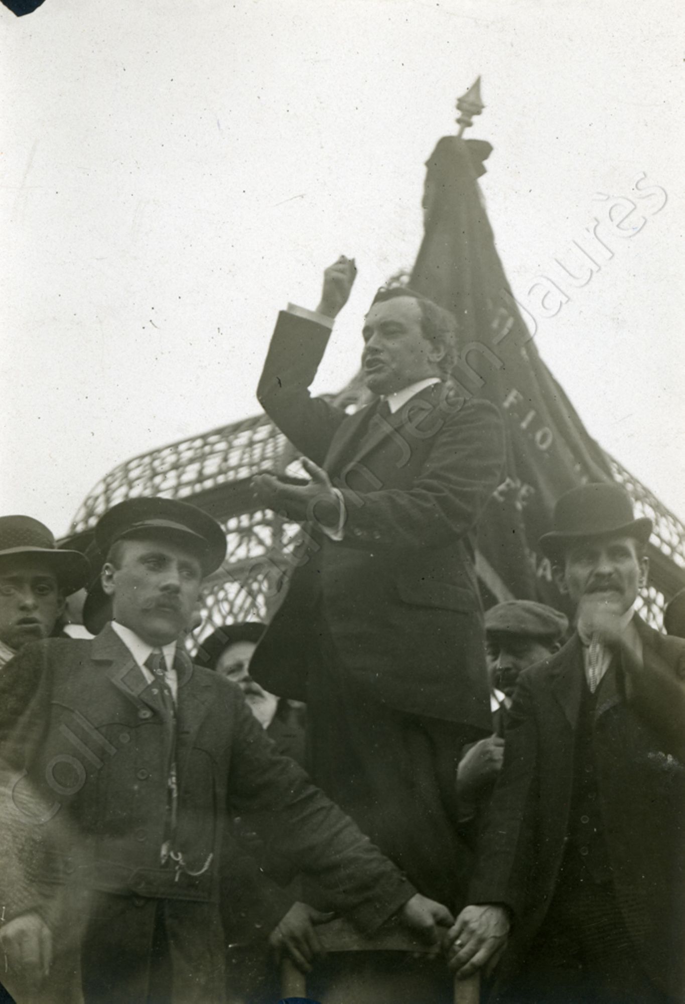 La Fédération socialiste de la Seine et l’Union des syndicats CGT de la Seine organisent le rassemblement. D’autres groupes s’y rallient et c’est en conséquence un mouvement uni d’opposition à la guerre qui se met en place. Cela n’est pas anodin : les deux principales organisations ouvrières n’ont guère l’habitude de s’associer à cette période, car elles jalousent leurs prérogatives et s’opposent aussi sur les modes d’action9. On retrouve également de telles divisions au sein même de la SFIO et de la CGT : ainsi, dans les rangs du Parti socialiste, qui regroupe 63 000 adhérents, si l’opposition à la guerre fait consensus, trois tendances existent : une tendance insurrectionnelle autour de Gustave Hervé, qui affirme qu’à la guerre doivent répondre une insurrection et une révolution. Ce courant très hostile aux autres socialistes connaît les faveurs de nombreux syndicalistes ou anarchistes. Il existe une autre tendance autour de Jules Guesde, qui promeut avant tout pour défendre la paix la lutte contre le capitalisme, car c’est ainsi, selon les guesdistes, que la guerre va disparaître. Enfin, une tendance regroupant les partisans de Jean Jaurès et d’Édouard Vaillant affirme que la SFIO doit tout faire pour empêcher la guerre, de l’action parlementaire à l’insurrection si nécessaire, mais seulement en dernier recours. Jaurès, qui est alors le vrai leader du parti, est absent à cette période, car il est en voyage en Amérique latine. Cette absence est sans aucun doute pour beaucoup dans l’oubli ensuite de cette première manifestation pacifiste unitaire. Quant à la CGT, dont les effectifs rassemblent 80 000 membres, les oppositions entre les révolutionnaires et les réformistes sont vives et récurrentes à cette période.